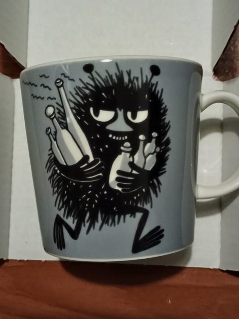 100 €Muumimuki: Muumipappa tuumiskelee, musta (1999-2013)Tyrnävä, Tyrnävä, Pohjois-Pohjanmaa7.12.FinmugLisää suosikiksi.