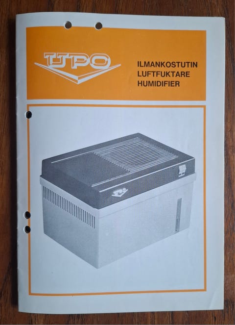 1 €Vanha UPO -ilmankostuttimen asennus- ja käyttöohje 1970-lukuHelsinki, Mellunmäki, Uusimaa17.11.Lisää suosikiksi.