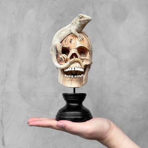 150 €Kaiverrus, Tamarind Wooden Skull with Carved Lizard from Deer Antler on stand -Helsinki, Keskusta - Etu-Töölö, Uusimaa3 pvCatawikiLisää suosikiksi.