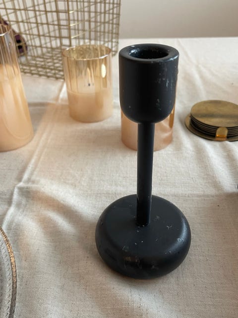 Hanki useampi erilainen, mutta samantyylinen kynttilänjalka ja tee niistä kollaasi juhlapöytään