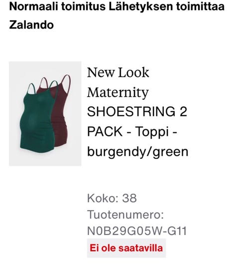 10 €New Look 2kpl 38/M raskaustoppiKoko 38Espoo, Matinkylä, Uusimaa6 pvOsta hetiLiikkeessä oleva kuorma-autoToriDiiliLisää suosikiksi.
