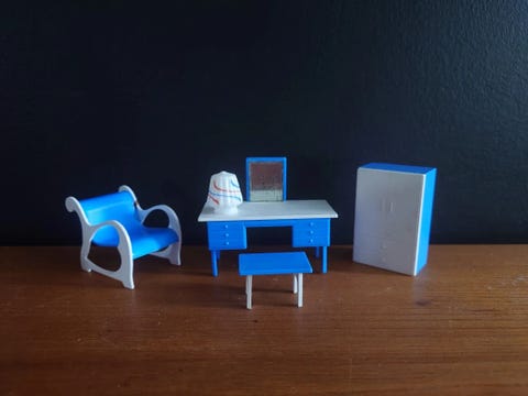 6 €Vanha nukkekoti kalustesetti peilipöytä, nojatuoli, kaappi ja lamppuSalo, Ollikkala, Varsinais-Suomi19.1.Hiiden Aarteet OyLisää suosikiksi.
