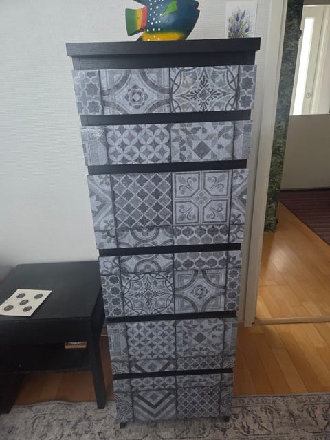 Vanha lipasto voi olla persoonallinen lisä muuten modernisti sisustettuun tilaan. Sama koskee luonnollisesti erilaisia hyllyjä. Käytettyjen kalusteiden tuunaaminen on monelle myös rakas harrastus tai mukava lomaprojekti.