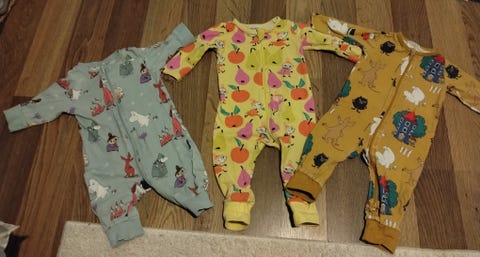 Vauvan pyjaman kannattaa olla helposti puettava ja usein niissä onkin nepparit ainakin haaroissa pukemista ja vaipanvaihtoa helpottamaan. Vauvan yöpukuja kannattaa olla kaapissa useita, jotta pyykkikonetta ei tarvitse jatkuvasti laulattaa.