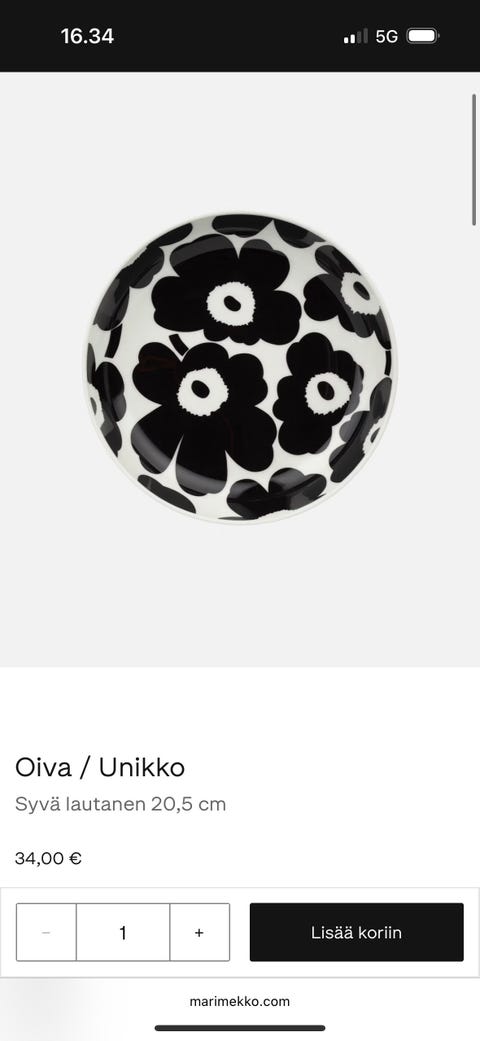 OstetaanMarimekko Oiva Unikko syvä lautanen MarimekkoHyvinkää, Hyvinkäänkylä-Vehkoja, Uusimaa1 tLisää suosikiksi.