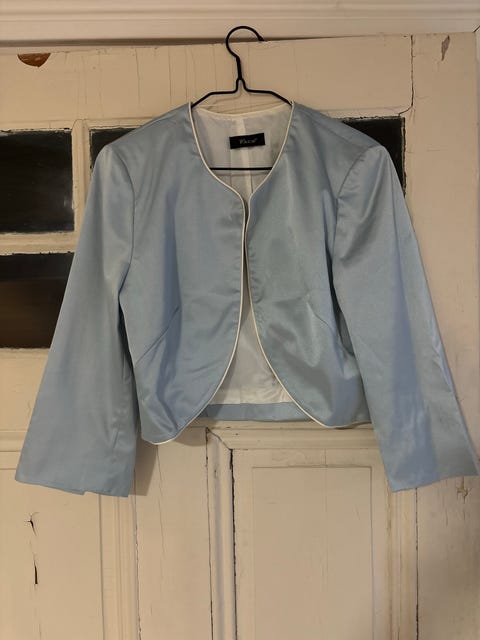 15 €Vaaleansininen silkkijakku, Santarelli naisten juhlajakku koko 38Koko 38Espoo, Etelä-Leppävaara, Uusimaa25.1.Lisää suosikiksi.
