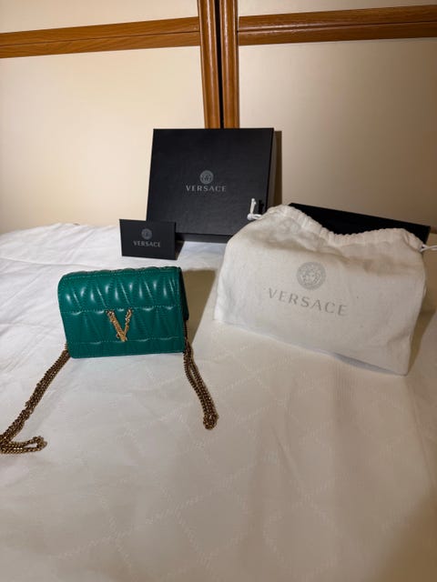 570 €Versace Nahkainen naisten käsilaukku vihreä VersaceHelsinki, Kaivopuisto - Ullanlinna, Uusimaa15.12.Ilmainen toimitus•Osta hetiLiikkeessä oleva kuorma-autoToriDiiliLisää suosikiksi.