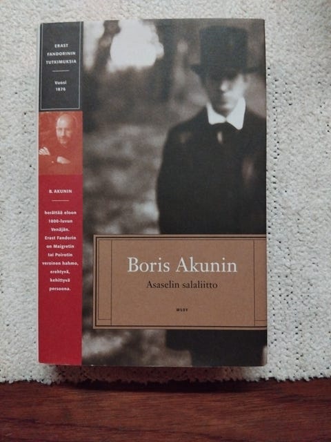 10 €Boris Akunin Asaselin salaliitto, 2001 painosKempele, Honkanen, Pohjois-Pohjanmaa25.11.Lisää suosikiksi.