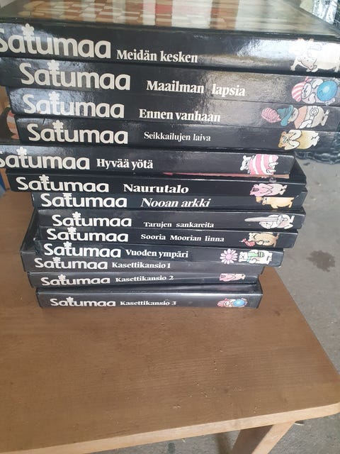 Satumaa kirjat ja kasettikansiot