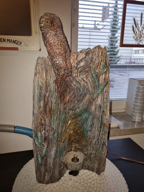 Pöllöteos valolla.