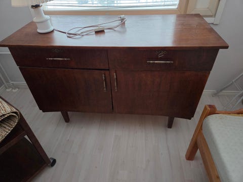 Vanha lipasto voi olla persoonallinen lisä muuten modernisti sisustettuun tilaan. Sama koskee luonnollisesti erilaisia hyllyjä. Käytettyjen kalusteiden tuunaaminen on monelle myös rakas harrastus tai mukava lomaprojekti.
