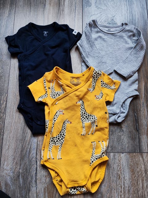 Vauvan body likaantuu usein, ja vaatekaappiin kannattaa ostaa iso varasto