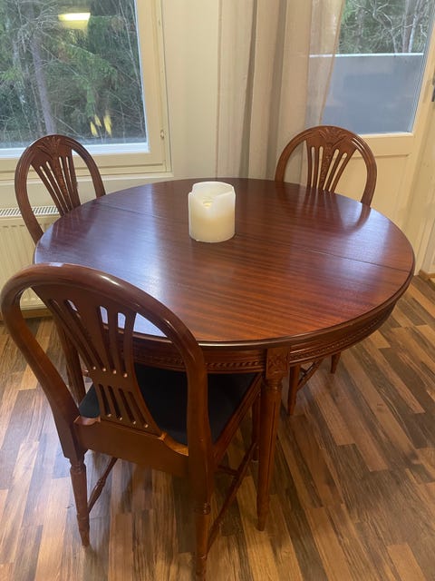 Ruokailuryhmä on usein melko arvokas hankinta ja usein kotona kovassa käytössä. Esimerkiksi taloudessa, jossa on yksi tai useampi pieni lapsi, ruokapöytään ja tuoleihin saattaa tulla naarmuja ja tahroja. Kannattaakin miettiä, voisiko käytetty pöytä olla omaan tarpeeseen riittävä ratkaisu. Ostamalla käytettyjä kodin kalusteita tuet myös kiertotaloutta!