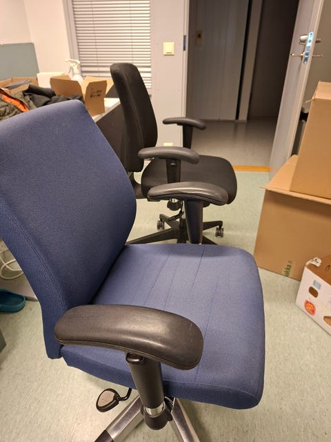 Kaksi toimistotuolia