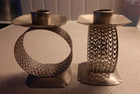 Hanki useampi erilainen, mutta samantyylinen kynttilänjalka ja tee niistä kollaasi juhlapöytään