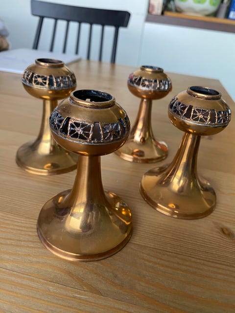 Kynttilänjalat tuovat sisustukseen persoonaa ja tunnelmaa. Torista voit löytää arkisia peruskynttilänjalkoja ja uniikkeja vanhoja kynttilänjalkoja, joita ei enää kaupoista saa! Rakenna juhlapöytään vaikkapa kynttilänjalka-kokoelma, jossa on erikokoisia, mutta samantyylisiä kynttilänjalkoja.