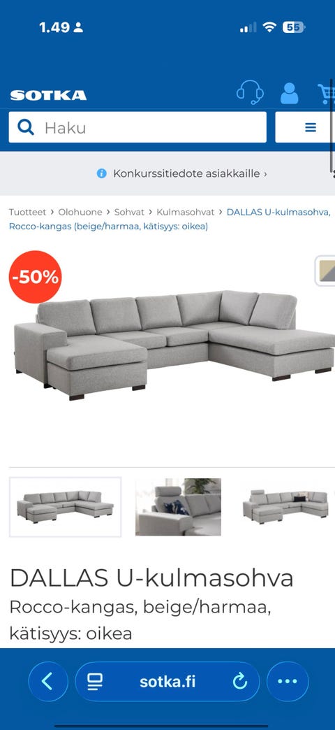 Kulmasohva voi parhaimmillaan olla tilaihme, jonka avulla pieneenkin olohuoneeseen mahtuu useampi ihminen mukavasti istumaan ja seurustelemaan. Kulmasohva voi olla melko arvokas hankinta, ja ostamalla käytettyä voit säästää sekä rahaa että luontoa!