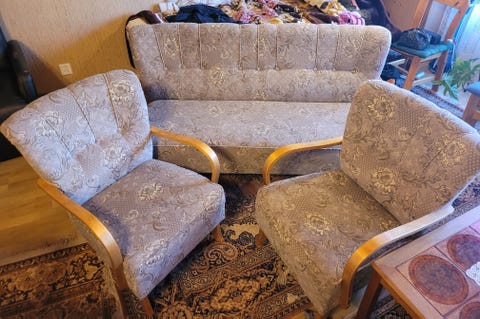 Sohva ja kaksi lepotuolia