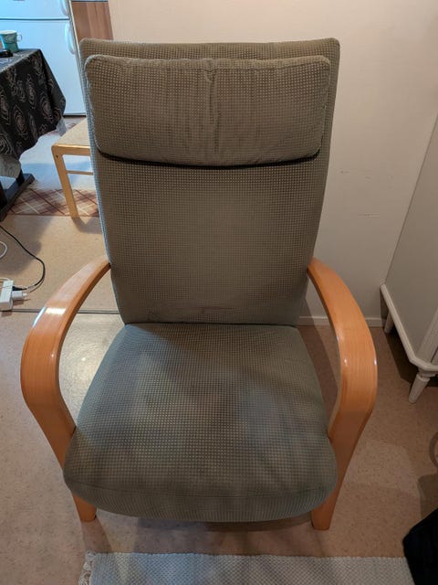 70 €Kalustekorhosen tukeva, klassinen nojatuoli, jossa oliivinvihreä plyysiverhoiluEspoo, Pohjois-Leppävaara, Uusimaa1 tLisää suosikiksi.