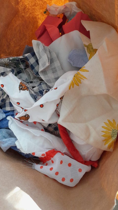 Kekseliäs ompelija haalii käytettyjä kankaita
