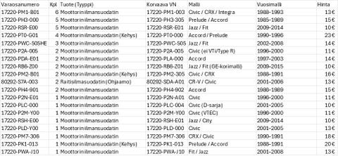 10 €Honda ilmansuodattimia alkuperäisiä uusia HondaVesilahti, Narva, Pirkanmaa4 pvOsta hetiLiikkeessä oleva kuorma-autoToriDiiliLisää suosikiksi.