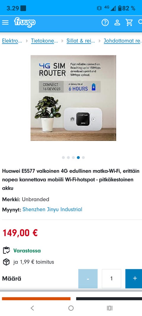 50 €Huawei 4G CPE Pro 2 Reititin Wi-Fi AC1200 Nano-SIMHämeenlinna, Hauho kk, Kanta-Häme6.10.Liikkeessä oleva kuorma-autoToriDiiliLisää suosikiksi.