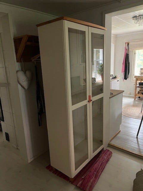 500 €Antiikkityylinen puinen vitriinikaappi lasiovilla ja laatikoillaHämeenlinna, Jukola, Kanta-Häme7 pvLisää suosikiksi.