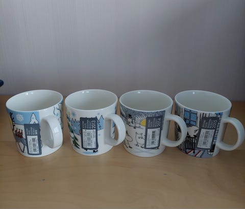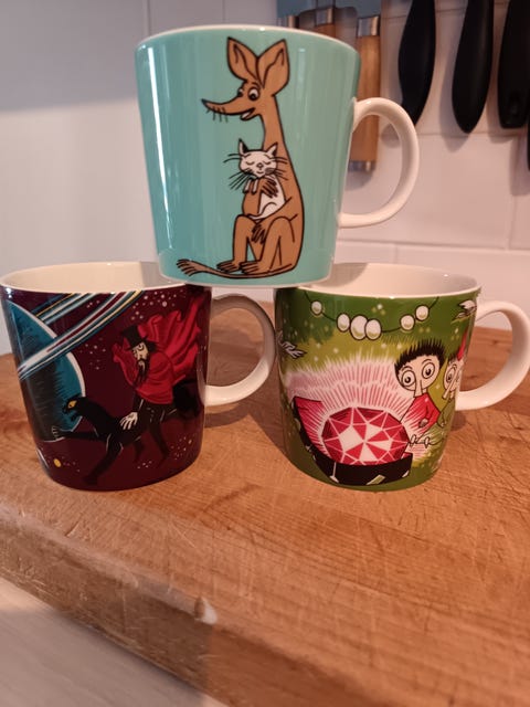 100 €Muumimukit; Talvimetsä,Kuusen alla, Hiihtäen kera herra Virkkunen, Talviuni ArabiaLahti, Kartano-Paavola, Päijät-Häme12.10.Lisää suosikiksi.