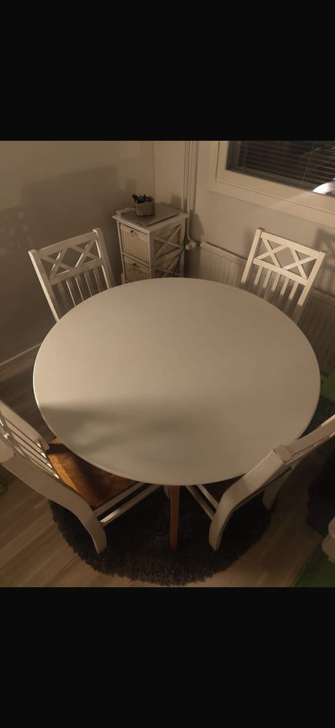 120 €Pyöreä pöytä jatkopalalla + 4 tuoliaSalo, Salo Keskus, Varsinais-Suomi20.1.Kierrätysmyymälä Salon EkocenterLisää suosikiksi.