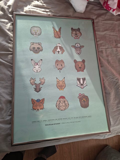 Kaunis tai hauska juliste kehystettynä on helppo tapa tuoda persoonaa huoneen sisustukseen