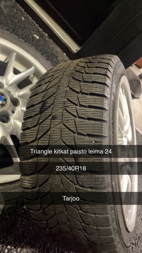 100 €Triangle Kitkat Paisto Renkaat 235/40R18Seinäjoki, Törnävä, Etelä-Pohjanmaa36 minLisää suosikiksi.