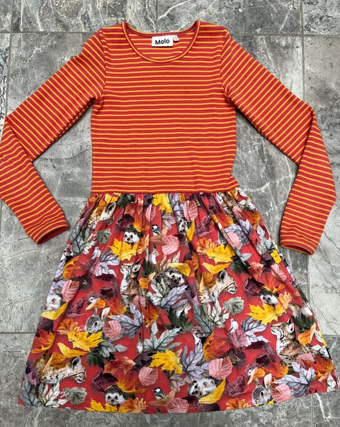Lasten mekko on kätevä haalarinkin alle, kunhan lisänä on trikoot tai sukkahousut