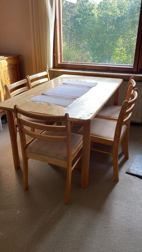 125 €Puinen ruokapöytä neljällä tuolilla vaaleanruskeaHyvinkää, Ridasjärvi, Uusimaa11.10.Lisää suosikiksi.