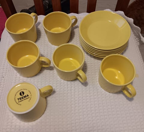 30 €Setti keltaisia Arabian Teema-kahvikuppeja ja lautasia ArabiaRiihimäki, Herajoki, Kanta-Häme5.12.Lisää suosikiksi.