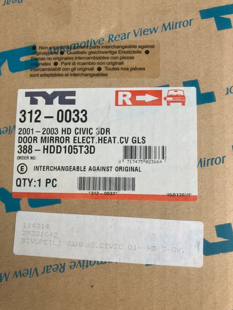 50 €Honda Civic HB 5D Peili Vasen/Oikea 01-03 HondaPori, Söörmarkku, Satakunta30.6.Valtakunnan KoneLisää suosikiksi.