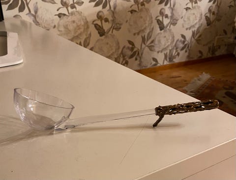 Hopeinen aterinsetti.