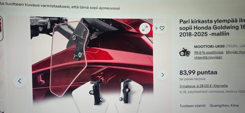 38 €Honda Goldwing 2018-2025 säädettävät tuuliohjaimet ylemmät ( uudet )Tuusula, Hyrylä, Uusimaa17.10.Lisää suosikiksi.