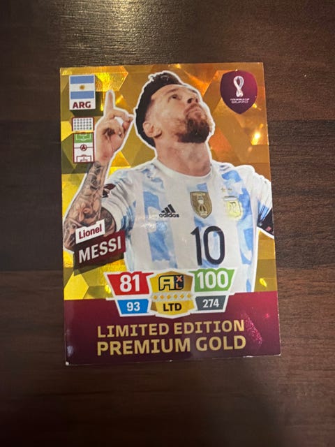 20 €Panini Adrenalyn XL Lionel Messi Limited Edition Premium Gold -jalkapallokorttiVantaa, Kirkonkylä-Veromäki, Uusimaa25.2.Lisää suosikiksi.