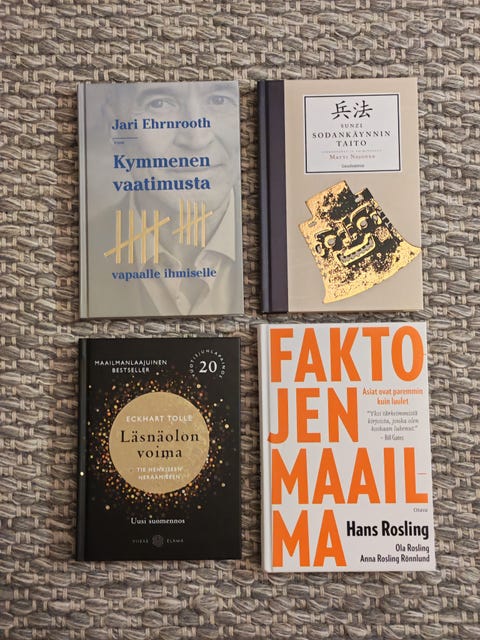 15 €Kirjoja. Jari Ehrnrooth, Sunzi, Eckhart Tolle, Hans RoslingTampere, Kaleva, Pirkanmaa11.11.Lisää suosikiksi.