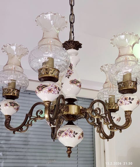 260 €Kattokruunu messinkiä ja posliinia kukkakuviollaKotka, Koivula, Kymenlaakso16.2.Lisää suosikiksi.