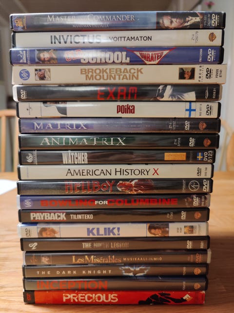 20 €DVD elokuvia (+ tv-sarjoja ja muutama peli)Kouvola, Korjala-Kaunisnurmi, Kymenlaakso15.12.Lisää suosikiksi.