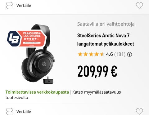 100 €Steel series Artic Nova 7 pelikuulokkeetSeinäjoki, Törnävä, Etelä-Pohjanmaa30.1.Lisää suosikiksi.