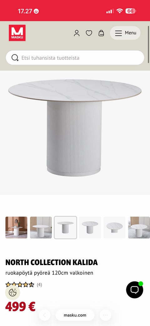 Aurinko ja vuoret40 €Valkoinen pyöreä ruokapöytäKouvola, Maunuksela, Kymenlaakso3 pvLisää suosikiksi.