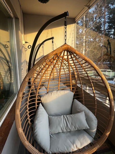 200 €Riippuva rottinkinen riippukeinu parvekkeelle pehmusteillaTampere, Tesoma, Pirkanmaa1 pvLisää suosikiksi.