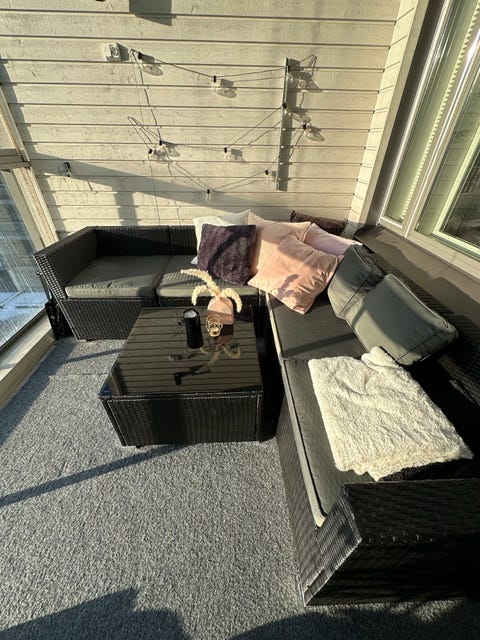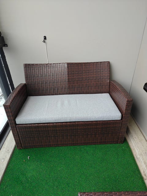 200 €Polyrottinkinen parvekesohva ja lepotuoli harmailla pehmusteillaHämeenlinna, Hätilä, Kanta-Häme1 pvLisää suosikiksi.