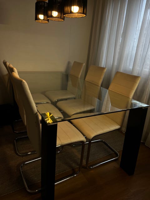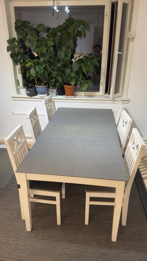 Pöytä ja kuusi tuolia