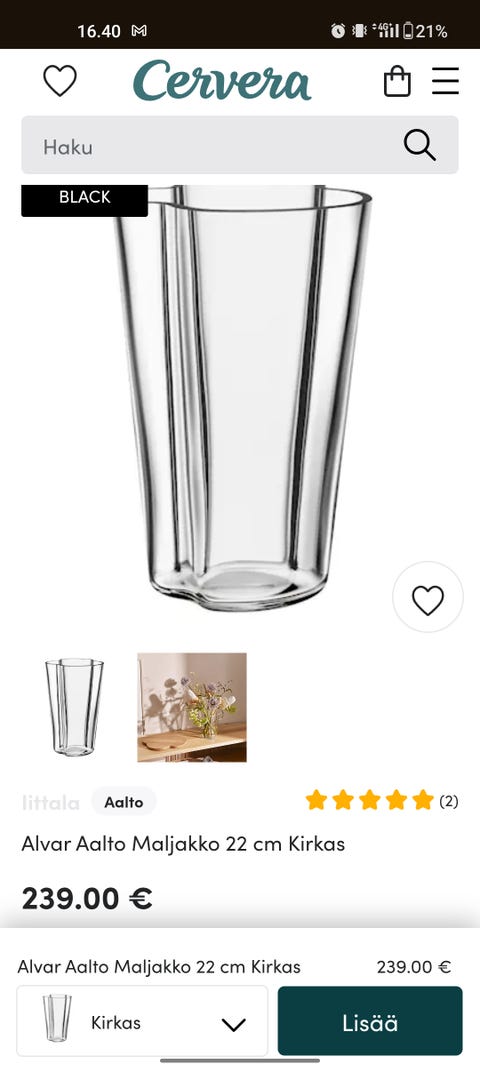 180 €Alvar aalto maljakko since 1936 IittalaTurku, Nummi-Ylioppilaskylä, Varsinais-Suomi24.11.Lisää suosikiksi.