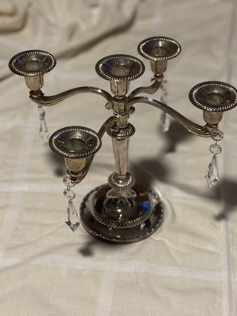 10 €Kaunis hopeoitu kynttelikkö kristallikoristeinTurku, Martti-Korppolaismäki, Varsinais-Suomi18.11.Lisää suosikiksi.