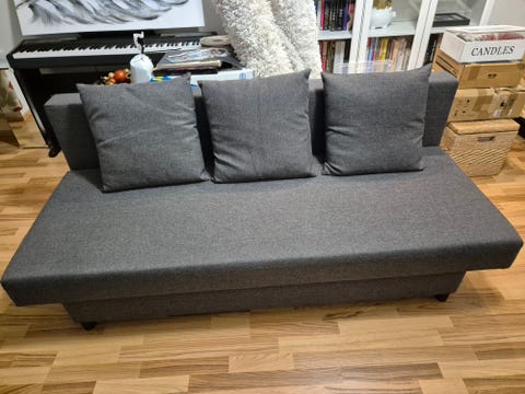 Vuodesohva sopii vieraiden majoitukseen ja omaksi sängyksi pieneen kotiin