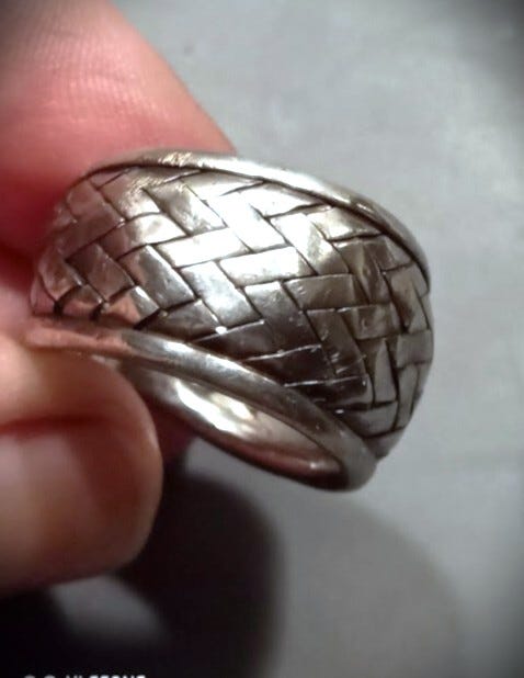 120 €Vintage hopeasormus vuosi 1967Rovaniemi, Sahanperä-Ratantaus, Lappi15.11.2024Tuhat-Tori AyLisää suosikiksi.